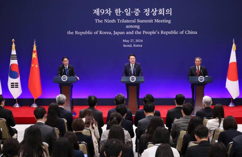 وقبل إجرائه محادثات مع رئيس الوزراء الصيني لي تشيانغ وكيشيدا، قال الرئيس الكوري الجنوبي يون سوك يول في كلمته الافتتاحية إن «أي عملية إطلاق باستخدام تكنولوجيا الصواريخ البالستية من شأنها أن تنتهك القرارات المتعددة لمجلس الأمن الدولي وتقوّض السلام والاستقرار الإقليميين والعالميين».