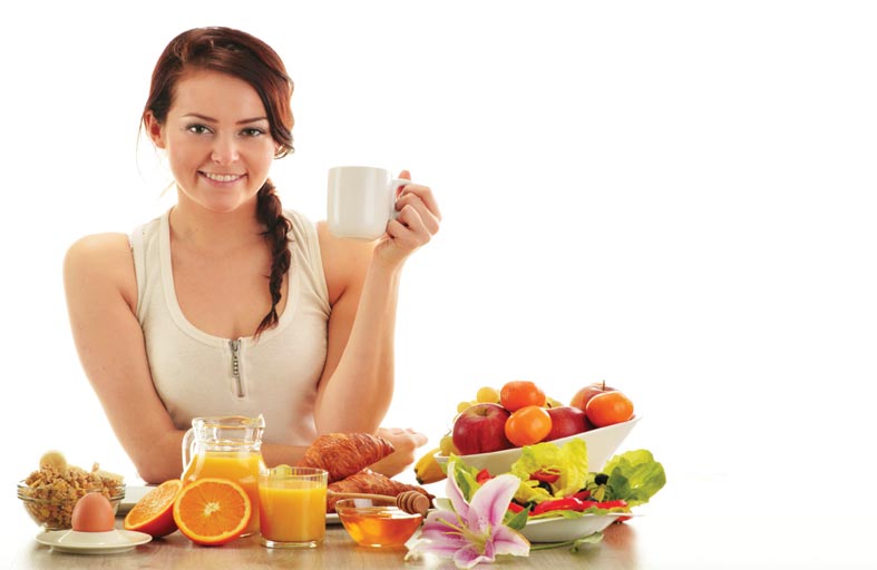 يعتبر تناول الطعام الصحي بمثابة الاتجاه الأساسي للمحافظة على الرشاقة، وعادة ما يقوم هذا النوع من التغذية بالتركيز على تناول الخضروات والفواكه بشكل يومي، من دون إغفال تضمين مستوى جيّد من البروتينات كذلك. إلى جانب ذلك، فإنه من الضروري محاولة الحصول على جرعات من المغذّيات الإضافية كالحديد، الزنك والفيتامينات المختلفة، نظراً لاحتمال تفويت بعض منها في النظام الغذائي دون إدراك ذلك.