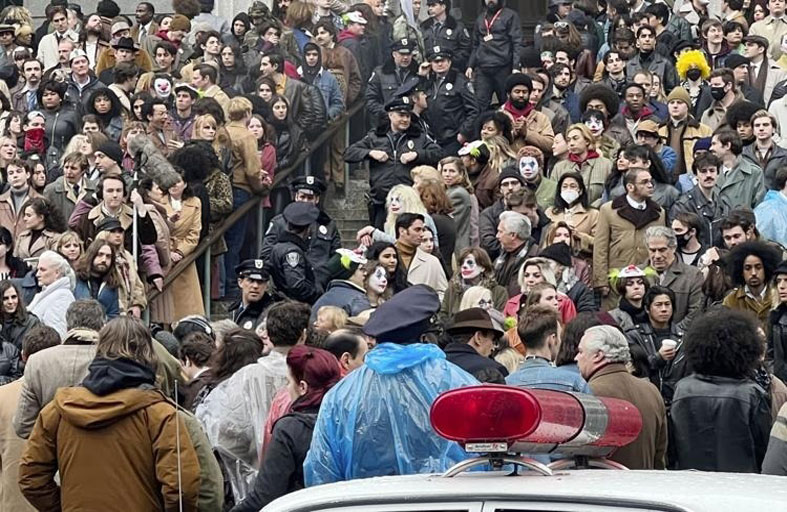 تواجه أطقم إنتاج فيلم جوكر الجديد احتمال تعطل التصوير بسبب الاحتجاجات التي ينظمها مؤيدو ترامب، مع تجمع حشود من المتظاهرين عند المحكمة في نيويورك. وكانت سلطات مدينة نيويورك قد استعدت لهذا المشهد، حيث ينظر المدعون العامون في إصدار لائحة اتهام ضد الرئيس السابق دونالد ترامب، الذي دعا أتباعه إلى التجمع نيابة عنه. لكن يوم السبت، كان من المقرر استئناف تصوير فيلم جوكر.