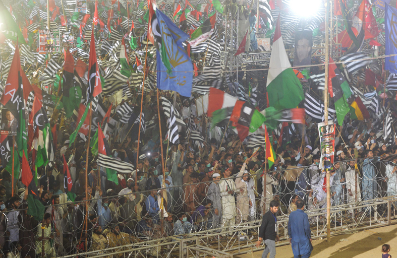 تظاهر عشرات الآلاف من أنصار المعارضة في مدينة كراتشي، أكبر مدن باكستان، في إطار حملة للإطاحة برئيس الوزراء عمران خان الذي يقول المعارضون إن الجيش وضعه في هذا المنصب بعد انتخابات مزورة عام 2018. وهذه هي ثاني مظاهرة حاشدة في كراتشي في ثلاثة أيام تنظمها حركة باكستان الديمقراطية التي شكلتها تسعة أحزاب معارضة رئيسية لتدشين حملة مناهضة للحكومة في مختلف أنحاء البلاد. وتعاني باكستان في ظل حكم خان من رقابة متصاعدة على وسائل الإعلام وتشهد حملة على المنشقين والمنتقدين والمعارضة. لكن الحملة المناهضة له سعت إلى الاستفادة من الاستياء من إدارته للاقتصاد الذي كان يتراجع بشدة حتى قبل جائحة فيروس كورونا. وقالت مريم نواز ابنة نواز شريف، الذي تولى في السابق رئاسة الحكومة ثلاث مرات، ووريثته السياسية خلال الاحتجاج “سلبتم الناس وظائفهم. سلبتم الشعب قوت يومه». وفي الساعات الأولى من صباح الاثنين ألقت الشرطة القبض على زوجها محمد سافدار بعد بلاغات من حزب “تحريك إنصاف” الذي يتزعمه خان بأنه رفع شعارات سياسية في ضريح مؤسس باكستان محمد علي جناح، وهو ما يُعد مخالفة قانونية. وقالت مريم نواز على تويتر “اقتحمت الشرطة غرفتي في الفندق الذي أقيم فيه بكراتشي وألقت القبض على الكابتن سافدار”. وقال متحدث باسم حكومة الإقليم إنها لم تصدر أوامر للشرطة بذلك. وخلال احتجاج الأحد، تبادلت مريم نواز المنصة مع بيلاوال بوتو زرداري التي شغلت والدتها الراحلة بينظير بوتو منصب رئيس الوزراء مرتين. وقالت بيلاوال التي يحكم حزبها، حزب الشعب الباكستاني، كراتشي الواقعة في جنوب البلاد “فلاحونا جائعون في بيوتهم... شبابنا ساخطون”. ولمست رسالتها وترا لدى أنصار المعارضة في دولة تعاني حاليا من معدل تضخم في خانة العشرات وانكماش اقتصادي. وقال متظاهر يدعى فقير بلوخ (63 عاما) في مظاهرة كراتشي “التضخم قصم ظهر المواطنين الفقراء وأجبر كثيرين على التسول لإطعام أطفالهم... حان الآن وقت رحيل هذه الحكومة”. وفي تلك الأثناء كان المحتجون يهتفون “ارحل يا عمران ارحل». ومن المقرر أن تجري باكستان الانتخابات المقبلة عام 2023. ونظمت المعارضة يوم الجمعة احتجاجا حاشدا في مدينة جوجرانوالا في إقليم البنجاب بشرق البلاد وهو معقل لحزب الرابطة الإسلامية جناح نواز شريف. واتهم شريف الذي تحدث إلى الحشد عبر الفيديو من لندن قائد الجيش قمر جاويد باجوا بتزوير انتخابات 2018 وتدبير الإطاحة به في عام 2017 قائلا إن اتهامات الفساد التي وجهت إليه ملفقة.