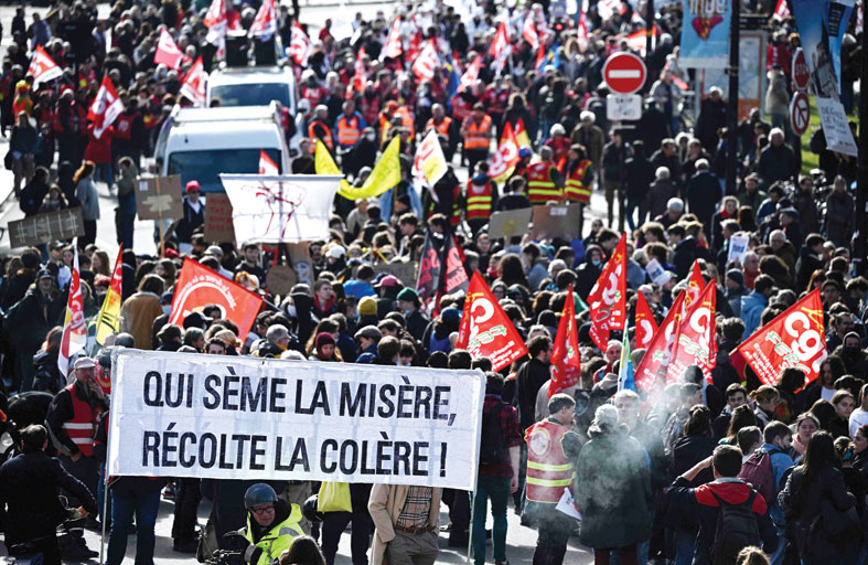 نظم معارضو خطة التقاعد التي طرحها الرئيس الفرنسي إيمانويل ماكرون جولة جديدة من الإضرابات والاحتجاجات أمس، حيث تدرس لجنة مشتركة من أعضاء مجلس الشيوخ والنواب مشروع القانون المثير للجدل.
