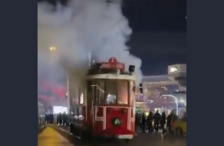 نجا ركاب عربة القطار الحمراء الشهيرة التي تجوب شارع الاستقلال في ساحة تقسيم بإسطنبول من حريق مفاجئ داخل العربة. ووقع الحريق خلال وصول القطار أو الترام لميدان تقسيم، وتوقفه لإنزال الركاب، وغالبيتهم سياح؛ ما ساعد في خروجهم سريعاً من العربة قبل أن يصاب أي منهم بأذى. وأظهر مقطع فيديو للحادثة، النار مشتعلة في العربة الخالية خلال ساعات المساء بينما تحيط الشرطة وسيارات إطفاء بها. وقالت تقارير محلية، إن ركاب الترام نزلوا قبل أن يصاب أي منهم بأذى، ليبدأ السائق باستخدام مطفأة الحريق التي معه لحين وصول سيارة الإطفاء.