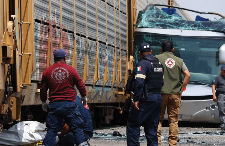 أعلنت السلطات المكسيكية، مقتل عشرة أشخاص على الأقلّ وإصابة 41 آخرين بجروح، إثر اصطدام قطار بحافلة عند تقاطع للسكك الحديد في ولاية مكسيكو.