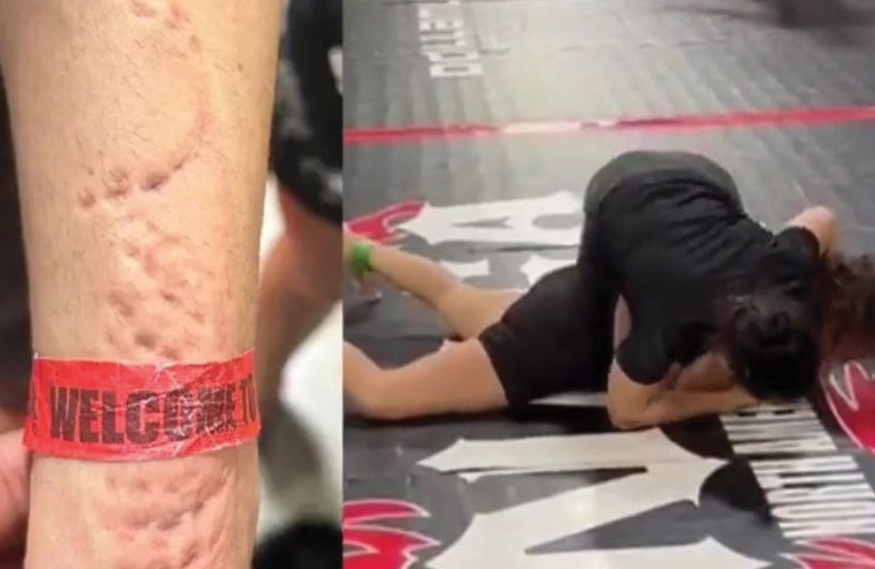 واكتشفت اللاعبة بعد انتهاء التثبيت على الأرض وجود علامات عض عميقة على ساعدها، وأظهرت الصور التي شاركتها على وسائل التواصل الاجتماعي مدى قوة الإصابة.