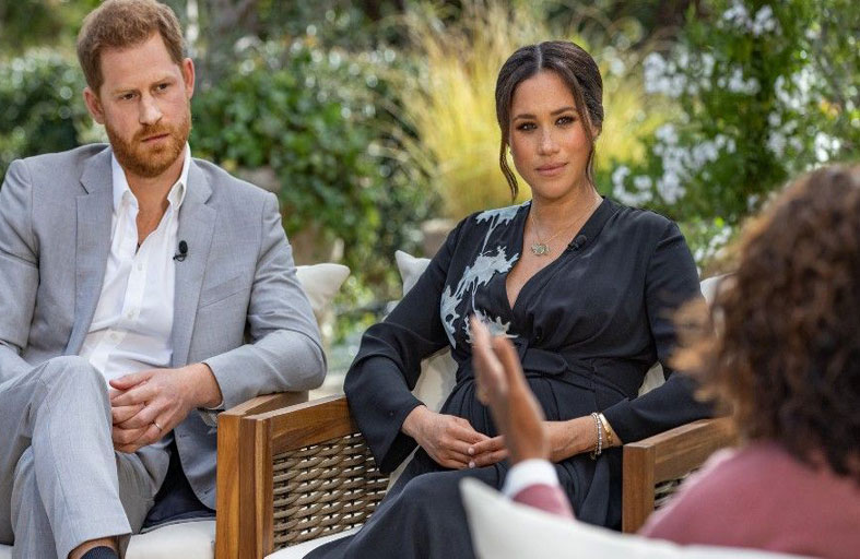 تم نشر اعترافات ميغان ماركل، مثل اعتراف ديانا قبلها، على نطاق واسع، في وسائل الإعلام وعلى وسائل التواصل الاجتماعي، باعتباره هجومًا على العائلة المالكة يفضح بشكل خاطئ وغير أخلاقي الكواليس الداخلية للملكية. ووجد المعلقون مثل بيرس مورغان، مقابلة ساسكس مخزية، متسائلين كيف يمكن أن يعاملوا الملكة والأمير فيليب ككاذبين بينما فيليب موجود حاليًا في المستشفى.
