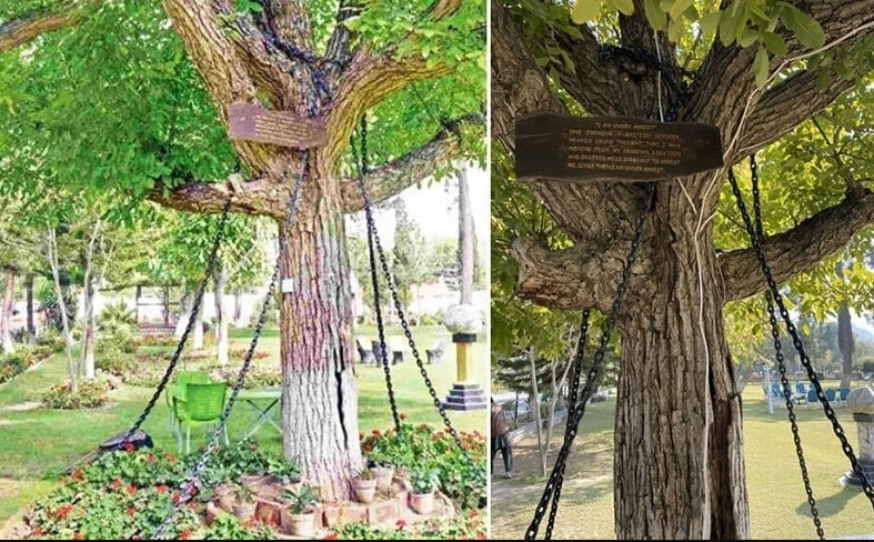 في حين أن اعتقال المذنبين من البشر بسبب الجرائم التي يرتكبونها هو سيناريو شائع، إلا أن مشاهدة شجرة مكبلة بالسلاسل أمر مثير للدهشة. شجرة بانيان الموجودة في معسكر لاندي كوتال للجيش في باكستان ظلت محتجزة لسنوات، وتعرض لوحة مكتوب عليها “أنا رهن الاعتقال». القصة بدأت قبل 125 عاماً، عندما قام ضابط بريطاني مخمور يدعى جيمس سكويد، بتنفيذ واحدة من أغرب عمليات الاعتقال في بلدة تقع في بيشاور، باكستان. وفي حالة سكر، تخيل الضابط أن الشجرة كانت تترنّح خلفه، ما جعله يعتقلها. ومنذ ذلك الحين ظلت الشجرة مكبلة بالسلاسل. وكما ذكرت صحيفة “دون نيوز”، “في عام 1898، أمر ضابط بريطاني مخمور رقيباً بالقبض على الشجرة، لأنه كان يعتقد أنها تتجه نحوه. ومنذ ذلك الحين ظلت الشجرة مقيدة بالسلاسل”. وأدى الجزء المثير للجدل من قصة شجرة بيشاور المقيدة بالسلاسل إلى أن تصبح معلماً مهماً، وباتت الشجرة تجذب السياحة، التي تشتد الحاجة إليها إلى المنطقة. ويُعتقد أيضاً أن الفعل الذي قام به الضابط البريطاني كان له معنى أكثر قتامة. وأشار عمران شينوار، أحد سكان معسكرات الجيش، أثناء حديثه لصحيفة تريبيون إنديا، إلى أن ذلك كان وسيلة لتهديد أبناء القبائل. وأضاف: “من خلال هذا الفعل، أوضح البريطانيون لرجال القبائل أنهم إذا تجرأوا على التصرف ضد الحاكم، فسوف يعاقبون أيضاً بطريقة مماثلة». ويقال إن شجرة بانيان كانت رمزاً للوائح الجرائم الحدودية، وهو قانون استعماري شديد القسوة أصدره البريطانيون في عام 1901. وتم تقديم هذا القانون لمواجهة معارضة البشتون للحاكم البريطاني.