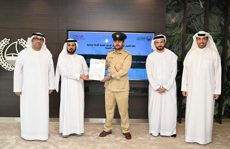 كرم سعادة اللواء أحمد ثاني بن غليطة، مدير الإدارة العامة للأدلة الجنائية وعلم الجريمة في شرطة دبي، 3 من موظفي الإدارة لحصولهم على الاعتماد الدولي المهني في مجال الصحة والسلامة وتحليل المخاطر من مجلس الاختبار المحلي للصحة والسلامة المهنية بالمملكة المتحدة "NEBOSH - نيبوش"، الجهة العالمية الرائدة والمرجع الأهم عالمياً في مجال إجراءات الصحة والسلامة في مقرات العمل.