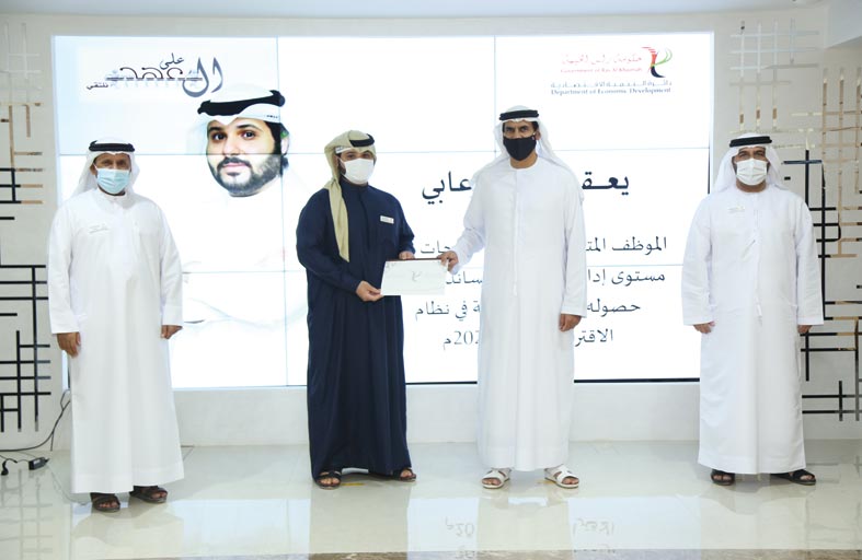 برعاية وحضور الشيخ محمد بن كايد القاسمي رئيس اقتصادية رأس الخيمة، نظمت الدائرة حفلها على العهد نلتقي لحصاد جهود النصف الثاني من العام 2020 وتكريم المتميزين في الدائرة. حضر الحفل د. عبدالرحمن الشايب النقبي – مدير عام الدائرة -وسعادة محمد المحمود مساعد المدير العام -ومدراء الإدارات وخبراء ومستشاري الدائرة، في حين حضر كافة موظفي الدائرة فقرات الحفل افتراضيًا التزاما بالتدابير الاحترازية المعتمدة.