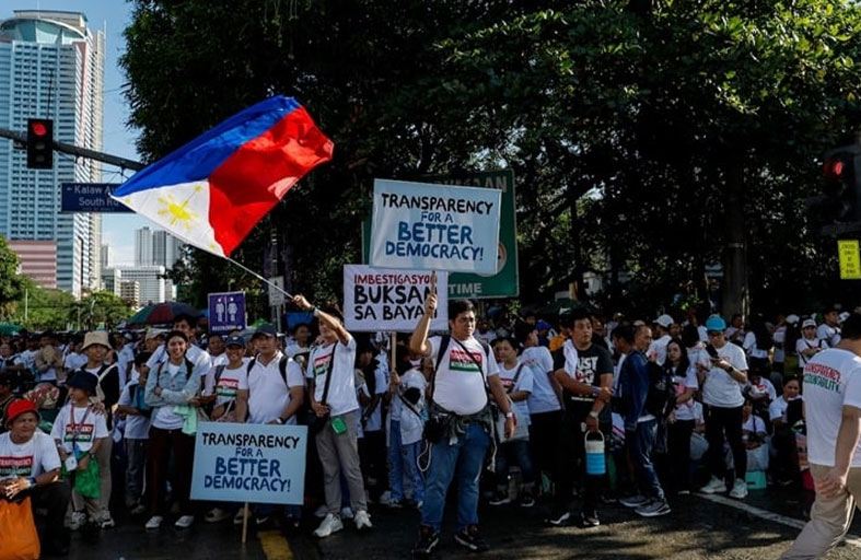احتشد عشرات الآلاف أمس الأحد في مستهل مظاهرة تستمر 3 أيام، دعت لها جماعة دينية في العاصمة الفلبينية، للمطالبة بالمساءلة بعد فضيحة فساد حول الفيضانات، تورط فيها نافذون في الكونغرس الفلبيني، ومسؤولون كبار في الحكومة.وهذا هو أحدث مظهر للغضب بسبب اتهامات بالفساد واسع في مشاريع للسيطرة على الفيضانات في واحدة من أكثر الدول عرضة للأعاصير في العالم.واحتجت جماعات مختلفة في الأشهر الماضية، بعد اكتشاف أن الآلاف من مشاريع الحماية من الفيضانات في مختلف أنحاء البلاد دون المستوى المطلوب، أو غير مكتملة، أو ببساطة غير موجودة. وأدلى مهندسون في الحكومة ومسؤولون عن الأشغال العامة، ومسؤولون تنفيذيون في شركات بناء بشهاداتهم تحت القسم في جلسات استماع عقدها مجلس الشيوخ، ولجنة لتقصي الحقائق، بأن أعضاء في الكونغرس الفلبيني ومسؤولين في إدارة الأشغال العامة والطرق السريعة، حصلوا على رشاوى من شركات بناء لمساعدتهم على الحصول على تعاقدات مربحة وتفادي المساءلة.