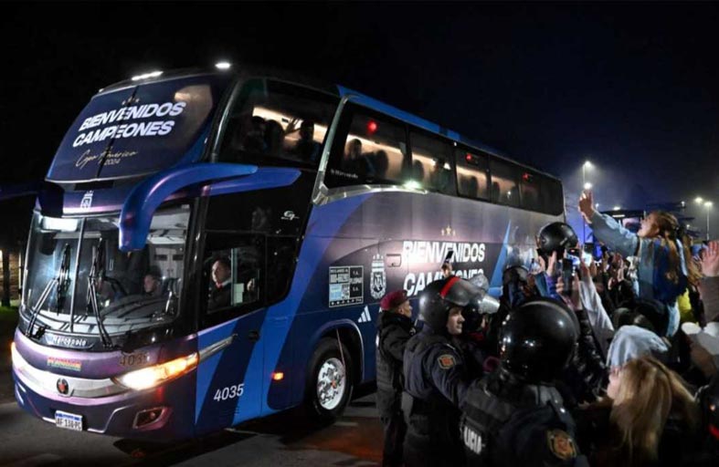 وقام لاعبو "ألبيسيليستي" العائدون إلى الأرجنتين بتحية الجماهير أمام مقر اتحاد اللعبة في إزيزا، في ضواحي بوينوس آيرس، من فوق حافلة، على الرغم من أن الجزء الأكبر من الفريق بقيَ في الولايات المتحدة، بما في ذلك القائد ليونيل ميسي.