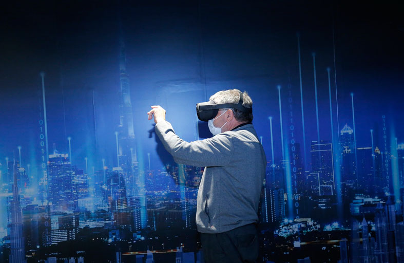 ويعدّ قسم الواقع الافتراضي في منصة "ذاكرة الوطن" من أبرز الأقسام الجاذبة للزوار من مختلف الأعمار، إذ يقدم المعلومة الموثقة عن مشاريع مهمة تعمل دولة الإمارات العربية المتحدة على إنجازها، ويستطيع الزائر حالما يثبت النظارة الخاصة بهذه التقنية في رأسه وأمام عينيه أن يعيش لحظات ممتعة بين خمسة مشاريع مستقبلية هي: إكسبو 2020 في دبي، ومطار أبوظبي الجديد، ومتحف زايد الوطني، ومتحف جوجنهايم، وبيت العائلة الإبراهيمية، وهذه المشاريع الثلاثة الأخيرة في جزيرة السعديات بأبوظبي.