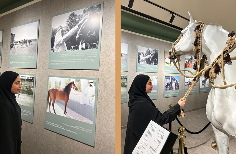 ويعرض الأرشيف والمكتبة الوطنية عبر شاشة خاصة مواد فيلمية توثّق اهتمام الشيخ زايد برياضة الفروسية والخيول، إلى جانب مشاركات الشيوخ وتميزهم في سباقات الخيل.