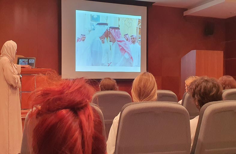 وقدمت المحاضرة صوراً رائعة من ماضي الإمارات وحاضرها، فأشارت إلى أهمية الضيافة لدى أبناء الإمارات، والفزعة، واحترام الكبير والعطف على الصغير، وتقدير العمل التطوعي، وآداب الكلام في المجالس، واحترام النعمة، والحفاظ على البيئة. وغيرها.