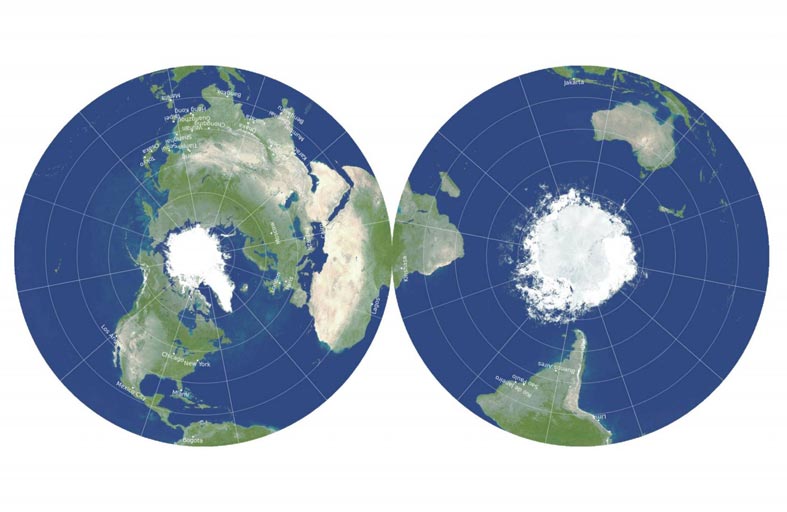 ونتج عن هذا النهج الجديد خريطة مستديرة وذات وجهين، على شكل قرص الفونوغراف.