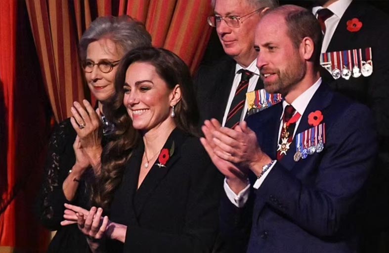 وابتسمت كايت، كما يناديها الجميع، وصفقت إلى جانب زوجها الأمير وليام، في حفل لمناسبة مهرجان الذكرى في قاعة ألبرت الملكية في لندن.