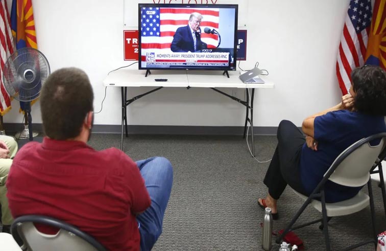 ومع ذلك، كانت نسب مشاهدة التلفزيون أقل ارتفاعا مما كانت عليه في النسخ السابقة: سجل الجمهوريون انخفاضًا في عدد المشاهدين بنسبة 21 بالمئة في المتوسط مقارنة بعام 2016 على مدار الأمسيات الأربع (إلى 18.8 مليون شخص)، والديموقراطيون بنسبة 17 بالمئة (إلى 21.57 مليون) حسب أرقام نيلسن، فقد قلّص المعســـــكران إلى الحــــد الأدنى ما كـــــان يصنع عادة النجاح الشعبي لهذه الاجتماعات السياسية.