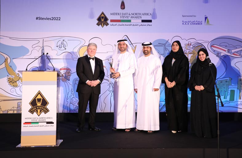 أستضافت إمارة رأس الخيمة مساء أول أمس الأول وبرعاية غرفة التجارة ، الحفل الختامي للدورة الثالثة لجائزة استيڤي العالمية للشرق الاوسط وشمال افريقيا 2022 ، وتحديداً بفندق والدروف استوريا ، حيث تم خلال الحفل الذي حضره سعادة محمد مصبح النعيمي رئيس غرفة تجارة رأس الخيمة ، وسعادة عبد العزيز عبد الله الزعابي، رئيس مجلس إدارة شركة رأس الخيمة العقارية، رئيس مجلس إدارة مستشفى رأس الخيمة ، وسعادة يوسف اسماعيل رئيس مؤسسة سعود بن صقر لتنمية مشاريع الشباب ، واعضاء مدجلس ادارة الغرفة ومسؤوليها ، وكافة مديري ومسؤولي الدوائر المحلية بالامارة ، وحشد كبير من ممثلي الشركات والمؤسسات الفائزة ، حيث تم تكريم الفائزين من مؤسسات حكومية وشركات خاصة وأفراد محلياً وخليجياً وعربياً ، من 17 دولة بالشرق الاوسط وشمال أفريقيا ، في جميع الفئات المستهدفة بالجائزة الذين يقدمون إنجازات وإبداعات متميزة ، وقد بلغ عدد الفائزين بالجائزة 83 فائزاً ، كان نصيب الامارات منهم 39 فائزاً  تقاسمتها مؤسسات حكومية وشركات خاصة من أبو ظبي ودبي والشارقة وعجمان ورأس الخيمة .