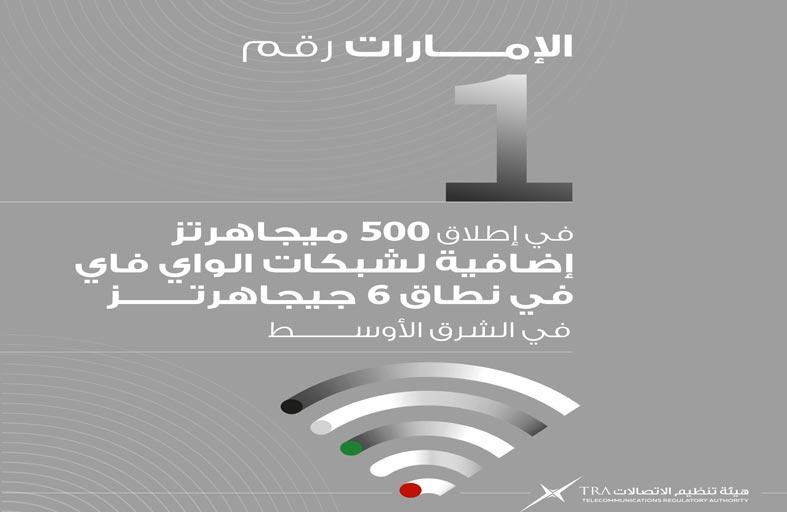 أعلنت الهيئة العامة لتنظيم قطاع الاتصالات عن توسيع نطاق الطيف الترددي المتاح لشبكات الـ”واي فاي” بإضافة تردد 500 ميجاهرتز في نطاق 6 جيجاهرتز للجيل الجديد من شبكات الواي فاي لتكون دولة الإمارات أول دولة في منطقة الشرق الأوسط وشمال إفريقيا التي تطلق هذا التردد في النطاق 6 جيجاهرتز “بالتحديد 5925 – 6425 ميجاهرتزط مع السماح بقدرة إرسال قصوى تبلغ 250 ميللي واط «EIRP» متاحا للاستخدامات الداخلية لشبكات الواي فاي فقط.