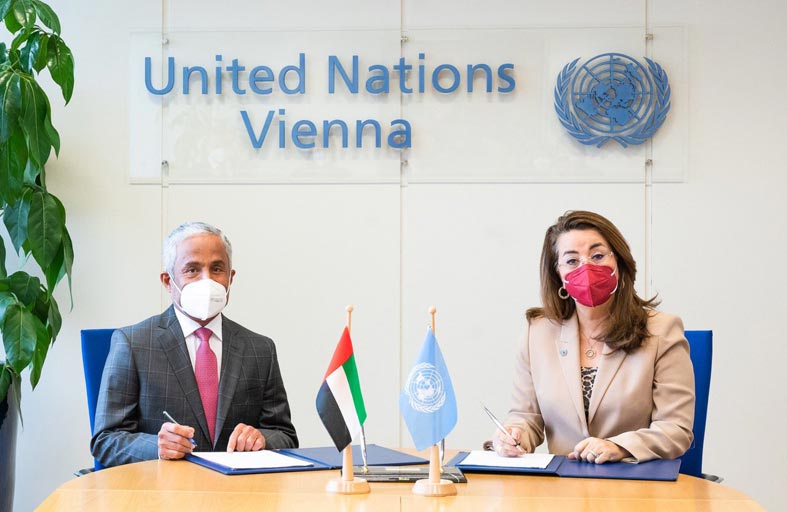 وقع الاتفاقية معالي الدكتور حارب العميمي رئيس ديوان المحاسبة رئيس الدورة الثامنة لمؤتمر الدول الأطراف في اتفاقية الأمم المتحدة لمكافحة الفساد ومعالي غادة والي وكيل الأمين العام للأمم المتحدة المدير التنفيذي لمكتب الأمم المتحدة المعني بالمخدرات والجريمة.