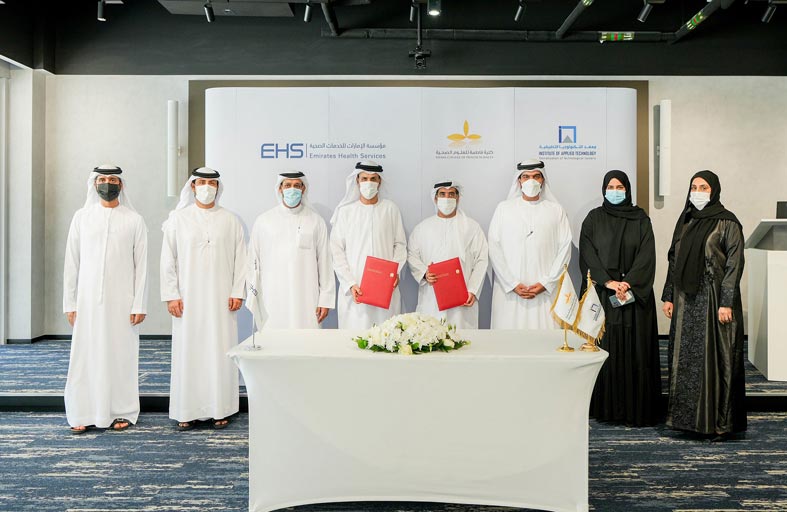 عززت مؤسسة الإمارات للخدمات الصحية من تعاونها المشترك مع كلية فاطمة للعلوم الصحية التابعة لمعهد التكنولوجيا التطبيقية المتخصصة في التعليم العالي والبحث العلمي بهدف دعم أهداف الطرفين الرامية إلى تطوير معرفة ومهارات الكوادر الصحية في الدولة ودعم تقدم البحث العلمي في القطاع الصحي.