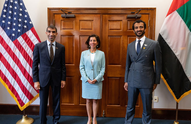 عقد معالي عبدالله بن طوق المري وزير الاقتصاد ومعالي الدكتور ثاني بن أحمد الزيودي وزير دولة للتجارة الخارجية، اجتماعا مع معالي جينا ريموندو وزيرة التجارة الأمريكية، بحضور معالي محمد علي محمد الشرفاء الحمادي رئيس دائرة التنمية الاقتصادية في أبوظبي، وعدد من مسؤولي البلدين.