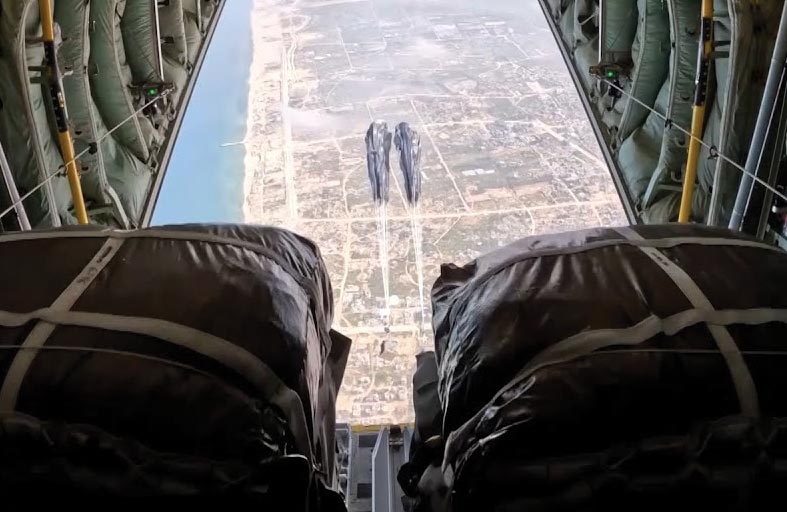 أعلنت قيادة العمليات المشتركة في وزارة الدفاع، تنفيذ ثالث عملية إسقاط للمساعدات الإنسانية والاغاثية بواسطة طائرات القوات الجوية لدولة الامارات العربية المتحدة، وطائرات القوات الجوية لجمهورية مصر العربية، على شمال قطاع غزة؛ للتخفيف من معاناة الأشقاء الفلسطينيين جراء الحرب ولمساعدتهم على تجاوز الظروف الصعبة التي يمرون بها.