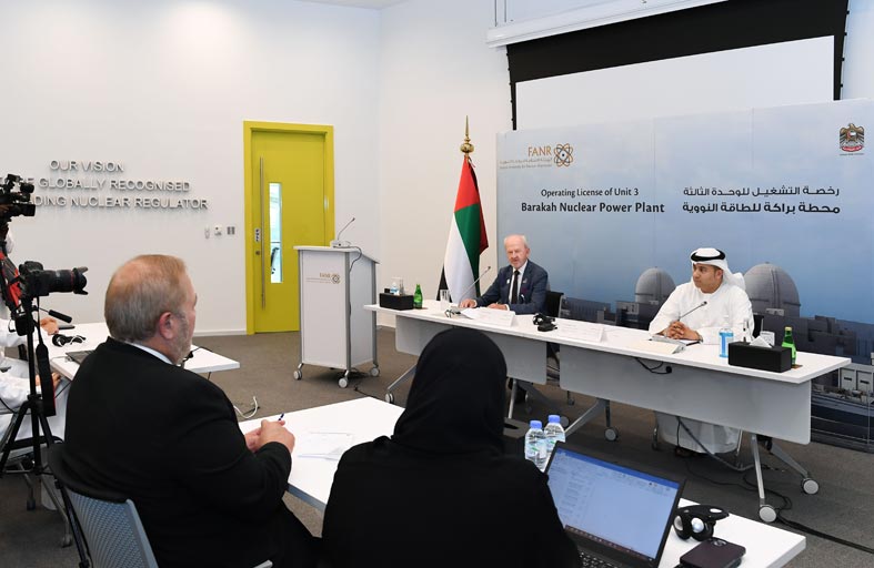 واستعرضت الهيئة في تقريرها، تفاصيل طلب رخصة تشغيل الوحدة الثالثة من محطة براكة للطاقة النووية السلمية، مشيرة إلى قيام مؤسسة الإمارات للطاقة النووية في عام 2017 بتقديم طلب رخصة تشغيل الوحدتين الثالثة والرابعة من محطة براكة إلى الهيئة، حيث أجرت الهيئة عمليات التقييم لطلب رخصة للوحدة الثالثة في أعقاب إصدار رخصتي التشغيل للوحدتين الأولى والثانية.