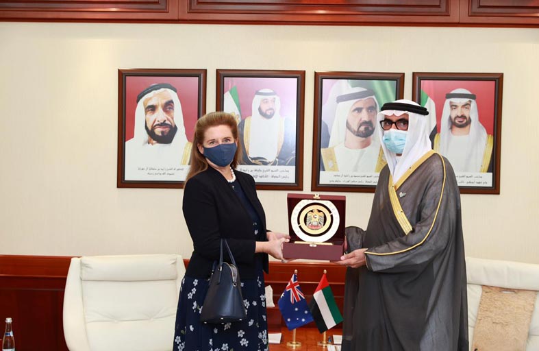 استقبل معالي محمد بن أحمد البواردي وزير الدولة لشؤون الدفاع في مقر الوزارة بأبوظبي صباح امس سعادة هايدي فينامور سفيرة أستراليا لدى الدولة والوفد المرافق لها بحضور سعادة مطر سالم الظاهري وكيل وزارة الدفاع. جرى خلال اللقاء استعراض علاقات الصداقة و التعاون المشترك بين البلدين خاصة في المجالات الدفاعية و العسكرية و سبل تطويرها وتعزيزها بما يحقق المصالح المتبادلة إلى جانب بحث عدد من القضايا الإقليمية و الدولية ذات الاهتمام المشترك.