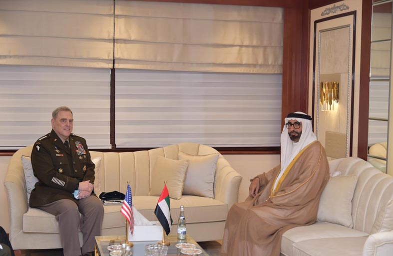 استقبل معالي محمد بن أحمد البواردي وزير الدولة لشؤون الدفاع في مقر وزارة الدفاع بأبوظبي امس الفريق أول مارك ميلي رئيس هيئة الأركان الأمريكية المشتركة، بحضور سعادة مطر سالم علي الظاهري وكيل وزارة الدفاع.