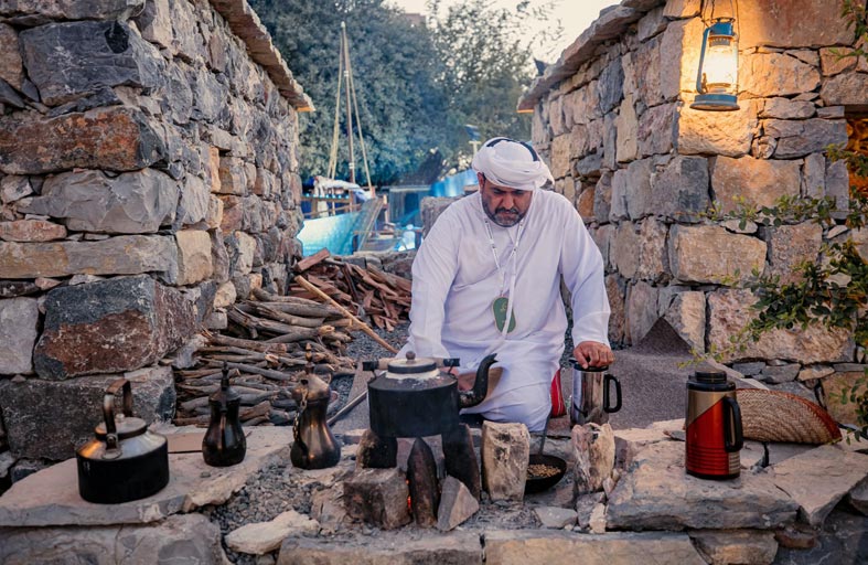 حين تطوف بالغرف المبنية على الطراز المعتاد في البيئة الجبلية تنسى أنك تتجول في "أيام الشارقة التراثية 18"، وما إن تقترب من الجدران الحجرية حتى تنفتح أمامك أبواب أزمنة تدعوك إلى أن تقرأ ما كتبه الأولون على صفحات الأحجار، لتروي لك بعضاً من ملامح حياتهم وتشعرك أنهم "مروا من هنا" تاركين آثاراً لم تتمكن عوامل التعرية من طمسها. إنها بيوت الذاكرة العصية على نسيان تاريخها، تشعر فيها بحرارة استقبال عبق رائحة القهوة، فلا تنتظر طويلاً حتى يدق أحدهم رأس الدلة بطرف الفنجان، مهدياً إليك عبير ضيافة أعدت على نار هادئة لإكرام الزائر. هكذا تحتفي "أيام الشارقة التراثية" بأهل الجبال، حيث تفوح رائحة الماضي من بيئتهم الساحرة.