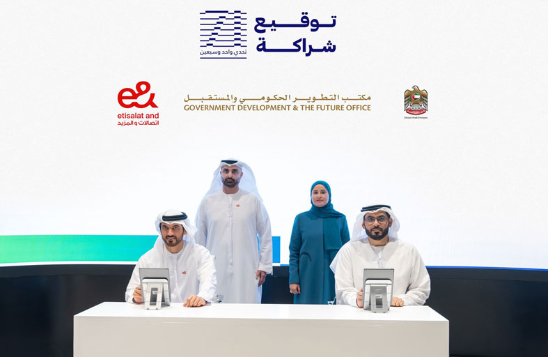 وقع مذكرة التفاهم الخاصة بالشراكة كل من سعادة أطرف شهاب المدير التنفيذي في مكتب التطوير الحكومي والمستقبل، وعلي المنصوري، الرئيس التنفيذي للموارد البشرية في مجموعة "إي آند"، بحضور معالي عهود بنت خلفان الرومي وزيرة دولة للتطوير الحكومي والمستقبل، ومسعود م. شريفمحمود، الرئيس التنفيذي لـ "إي آند الإمارات".