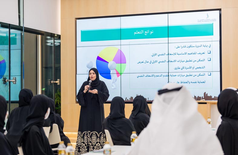 وأكدت الحمادي على محاور التدريب التأهيلي للمبادرة، والتي تتضمن مهارات الإسعاف النفسي الأولي وفق المبادئ والمعايير المعتمدة عالمياً، والمهارات الحياتية والاجتماعية الأساسية مهارات حل المشكلات وفض النزاعات. الخ ، ومهارات الكشف المبكر عن التعاطي والارتهان للمؤثرات العقلية، ومهارات الكشف المبكر عن العنف والإساءة وآليات التعامل معها، ومهارات الإدارة المالية لموازنة الأسرة، والتوعية القانونية بالتشريعات ذات العلاقة بتنظيم حياة الأسرة، بالإضافة إلى التوعية حول الخدمات التي تقدمها الدولة للأسرة في كافة القطاعات، وجلسات تنشيطية لضمان تجديد المعارف وترسيخ المهارات. وأوضحت أن آلية التنفيذ تكمن في ترشيح واختيار أفراد الأسر الذين تتوافر لديهم معايير برنامج /مستشار في كل أسرة/، وتقييم مستوى قدرات مستشاري الأسرة المرشحين من خلال المقابلات الشخصية لكل مرشح وتحديد مستوى المهارات الحياتية والاجتماعية الأساسية ومهارات التفاوض وحل المشكلات، ومستوى المرونة الفكرية، والثبات الانفعالي، بالإضافة إلى متابعة وتقييم مستوى تقدم مستشار الأسرة الذي تم تأهيله وتقييم الأثر على أسرته، والعمل على إعداد خطة تأهيلية مستمرة لبناء قدرات مستشار الأسرة من خلال وسائل تفاعلية ابتكارية وفق مفهوم التعلم الاجتماعي العاطفي والمحاكاة الاجتماعية.