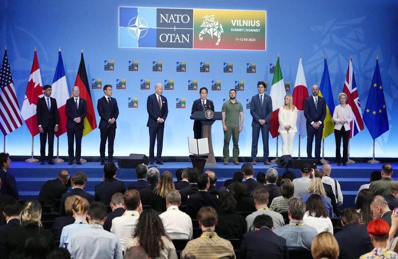 وزاد هذا السخط عندما وصف الرئيس الأوكراني فولوديمير زيلينسكي الصيغة المستخدمة في البيان الختامي بشأن انضمام بلاده بأنها «سخيفة» وهي «عندما يتفق الحلفاء ويتم استيفاء الشروط». هذه المرة، حاولت إدارة بايدن منع ما يمكن أن يفسد الانطباع بالوحدة والاحتفال بالتحالف. تم استقبال أندريه يرماك، أقرب المتعاونين مع زيلينسكي، في 2 يوليو من قبل جيك سوليفان، مستشار الأمن القومي الأمريكي، ومحاوره المميز منذ بداية الصراع. إن الأوكرانيين أنفسهم، الذين يواجهون إرهاق المجتمع والثمن الباهظ للحرب، يدركون هشاشة اللحظة وحدود ضغوطهم العامة على الغربيين.