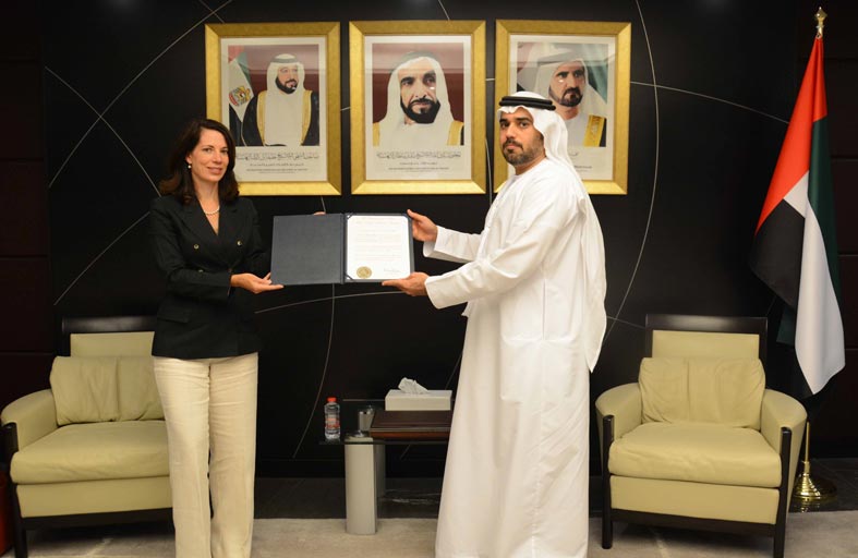 تسلم راشد عبدالله القصير نائب مدير مكتب وزارة الخارجية والتعاون الدولي في دبي البراءة القنصلية لسعادة ميجان جريجونيس القنصل العام للولايات المتحدة الأمريكية في دبي وذلك بمقر المكتب في دبي.
