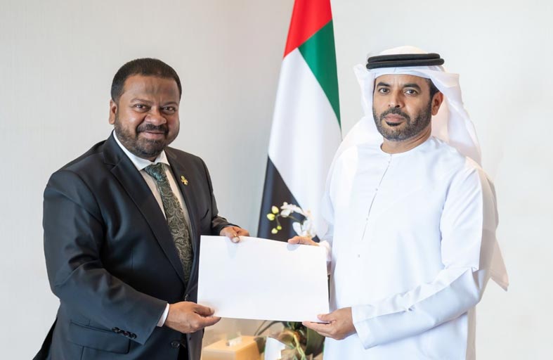 تسلّم سعادة سيف عبدالله الشامسي الوكيل المساعد لشؤون المراسم في وزارة الخارجية، نسخة من أوراق اعتماد سعادة محمد حسين شريف، سفير جمهورية المالديف لدى الدولة.