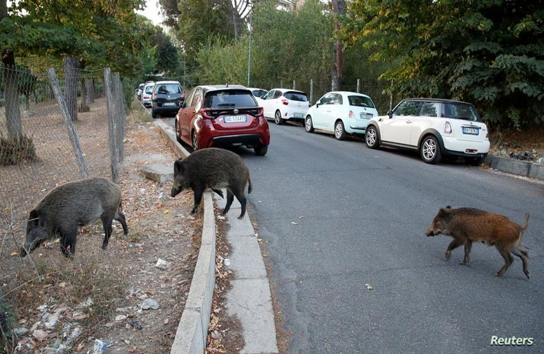 وأوضحت وسائل محلية أن مشاهدة الخنازير البرية في العاصمة الإيطالية ليست بالأمر الجديد، وهي غالبا ما ترى في مجموعات تفتش في أكوام القمامة على مشارف المدينة، إلا أن الأمر تغير في الأشهر الأخيرة، وأصبحت هذه الحيوانات البرية أكثر جرأة، وتوغلت في العمق داخل المدن بحثا عن الطعام.