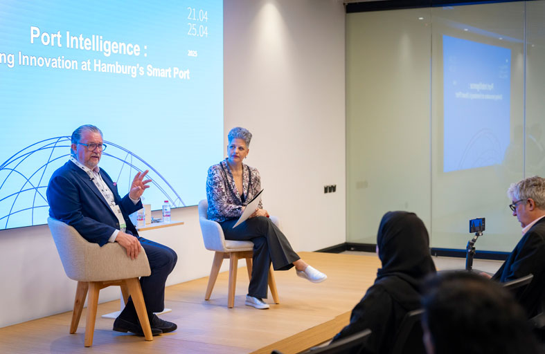 وفي عرض لتجربة دولية ناجحة في قطاع عمليات المناولة والخدمات اللوجستية المدعومة بالذكاء الاصطناعي، قدمت جلسة بعنوان "ذكاء الموانئ" نظمتها هيئة موانئ هامبورج الألمانية، نظرة عامة الابتكار في عالم الشحن وملامح موانئ المستقبل الذكية التي تستخدم البيانات لرفع كفاءة العمليات والتشغيل.
