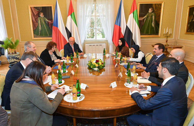استقبل فخامة ميلوس زيمان رئيس جمهورية التشيك في العاصمة براغ امس معالي صقر غباش رئيس المجلس الوطني الاتحادي، والوفد البرلماني المرافق له خلال زيارته الرسمية حاليا إلى التشيك.