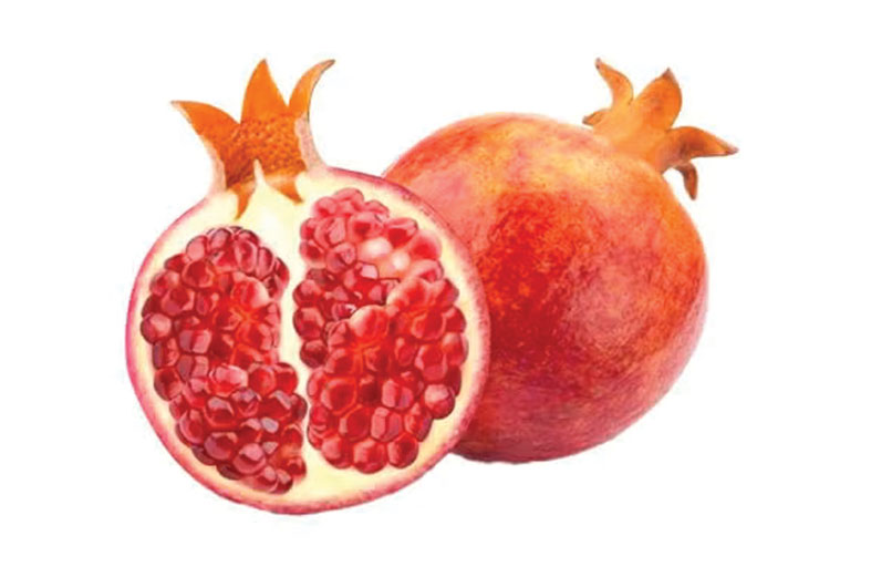 يعتبر الرمان غني بعناصره الغذائية وخاصة بالفيتامينات وله خواص وقائية وعلاجية عظيمة فهو مسكن للآلام ومخفض للحرارة ويفيد في حالات العطش الشديد أثناء الطقس الحار وقابض لحالات الإسهال ومانع للنزيف وخاصة الناتج عن البواسير والأغشية المخاطية.