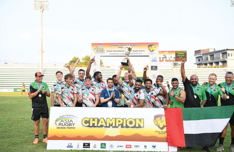 و آسيويا أيضا توج منتخب الإمارات للرجبي بلقب كأس آسيا لسباعيات الرجبي للرجال خلال منافسات البطولة التي أسدل عليها الستار أمس الأحد في مدنية بوكيت بتايلاند متفوقا على فرق قوية مشاركة في البطولة بينما نجح منتخب السيدات في الحصول على الميدالية الفضية والمركز الثاني، وذلك عقب وصوله إلى المباراة النهائية التي خسرها أمام تايلاند بنتيجة 5-22.