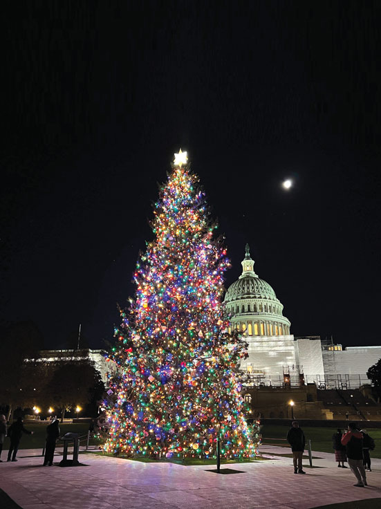 الزائرون ينظرون إلى شجرة الكابيتول الأمريكية ، قرب مبنى الكابيتول في واشنطن مع اقتراب احتفالات أعياد الميلاد - ا ف ب