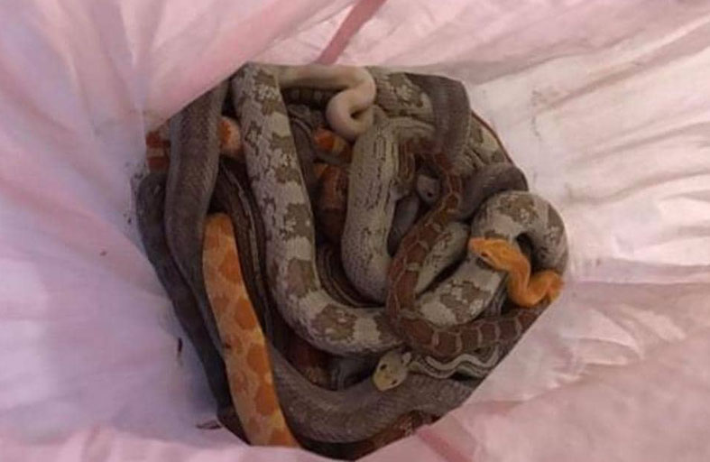 وكانت هذه المرة الثانية التي يتم فيها العثور على أفاع داخل غطاء وسادة، بعد أن عثر على 13 أفعى متروكة بنفس الطريقة قبلها بأيام. ولم تكتشف السلطات حتى الآن "سر" الأفاعي المهجورة.