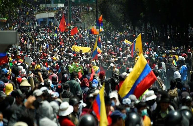 يواصل الآلاف من السكان الأصليين أمس الخميس الضغط على الحكومة في كيتو التي تشهد لليوم العاشر على التوالي تظاهرات أسفرت عن مقتل شخصين وجرح عشرات في مواجهة متصاعدة بين الحكومة والمحتجين.