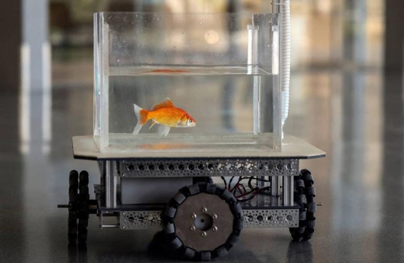 وصمم الباحثون في جامعة بن غوريون في النقب (جنوب) حوض أسماك مع عجلات ووضعوا فيه سمكة ذهبية وكاميرا وزودوه بتقنية استشعار تنقل ترجمة حركة السمكة إلى العجلات.