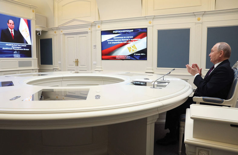 شارك الرئيسان الروسي فلاديمير بوتين والمصري عبد الفتاح السيسي، عبر رابط فيديو، أمس الثلاثاء، في مراسم صب خرسانة المفاعل الرابع بمحطة الضبعة النووية.