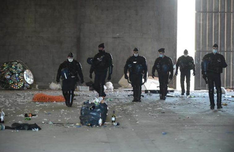 فضت الحكومة الفرنسية السبت الماضي حفلاً ضخماً في شمال غرب البلاد، استمر منذ ليلة رأس السنة، مخالفاً حظر التجول والقيود التي فرضت على التجمعات الكبيرة، للحد من انتشار جائحة كوفيد-19. وقالت الشرطة إن نحو 2500 شخص حضروا الحفل الصاخب الذي أقيم في مخزن غير مستخدم في ليورون بالقرب من مدينة رين، واشتبك البعض مع السلطات.