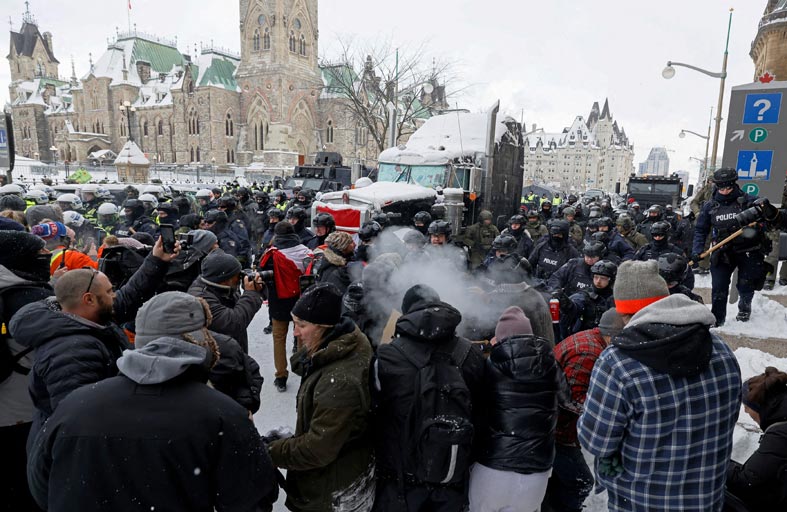 أعلنت الشرطة الكندية التي تُواصل العمل على تفريق مجموعة متشدّدة من المحتجّين في العاصمة الفدراليّة، أنّ “تقدّما كبيرا” أحرز السبت لناحية إخلاء وسط أوتاوا المشلول منذ أسابيع بسبب الاحتجاجات المناهضة للقيود الصحّية.