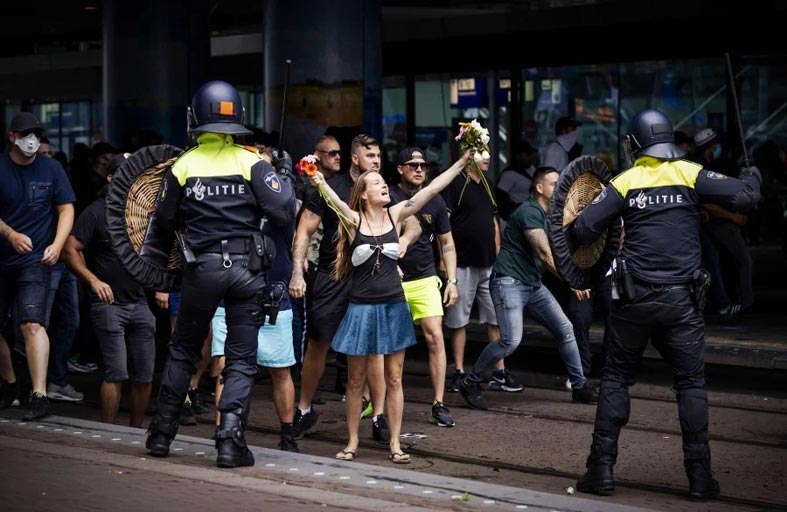 أوقفت الشرطة الهولندية عشرات المحتجين على السياسة التي انتهجتها الحكومة في مواجهة فيروس كورونا، وذلك خلال تظاهرة شهدت مواجهات استخدمت خلالها قوات الأمن خراطيم المياه لتفريق المتظاهرين.