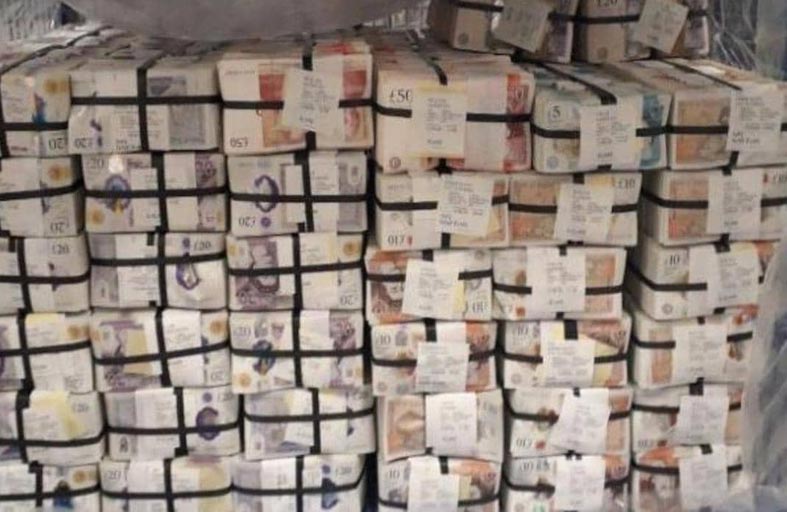 وأعلنت وكالة مكافحة الجرائم في بريطانيا، أن المحققين عثروا على مبلغ 54 مليون جنيه إسترليني نقدا، أي ما يعادل (67 مليون دولار)، بالإضافة إلى طنين من الكوكايين، و77 قطعة سلاح، من بينها بنادق هجومية وقنابل يدوية ومدافع رشاشة.