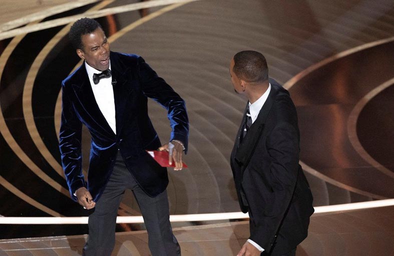 وخلال البث التلفزيوني المباشر لجوائز الأوسكار، صعد سميث إلى خشبة المسرح بعد أن ألقى روك مزحة حول مظهر زوجة سميث، ثم صفع الممثل الكوميدي على وجهه.